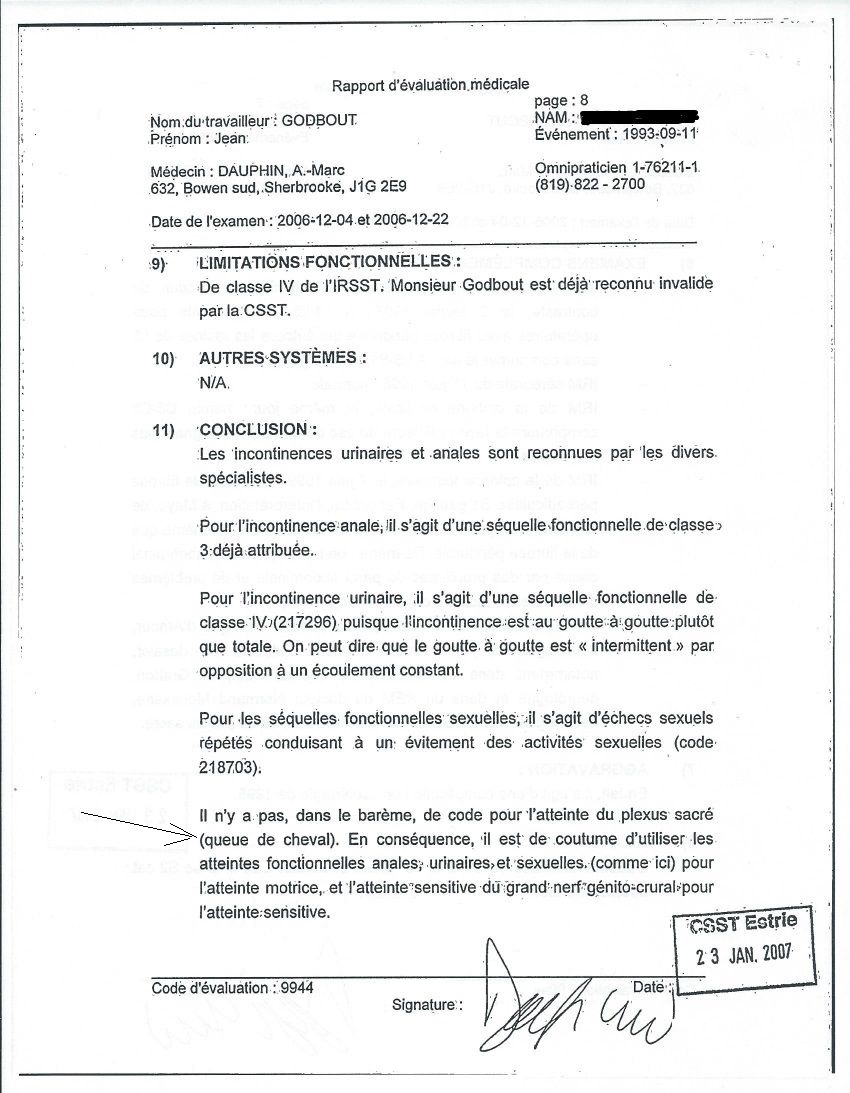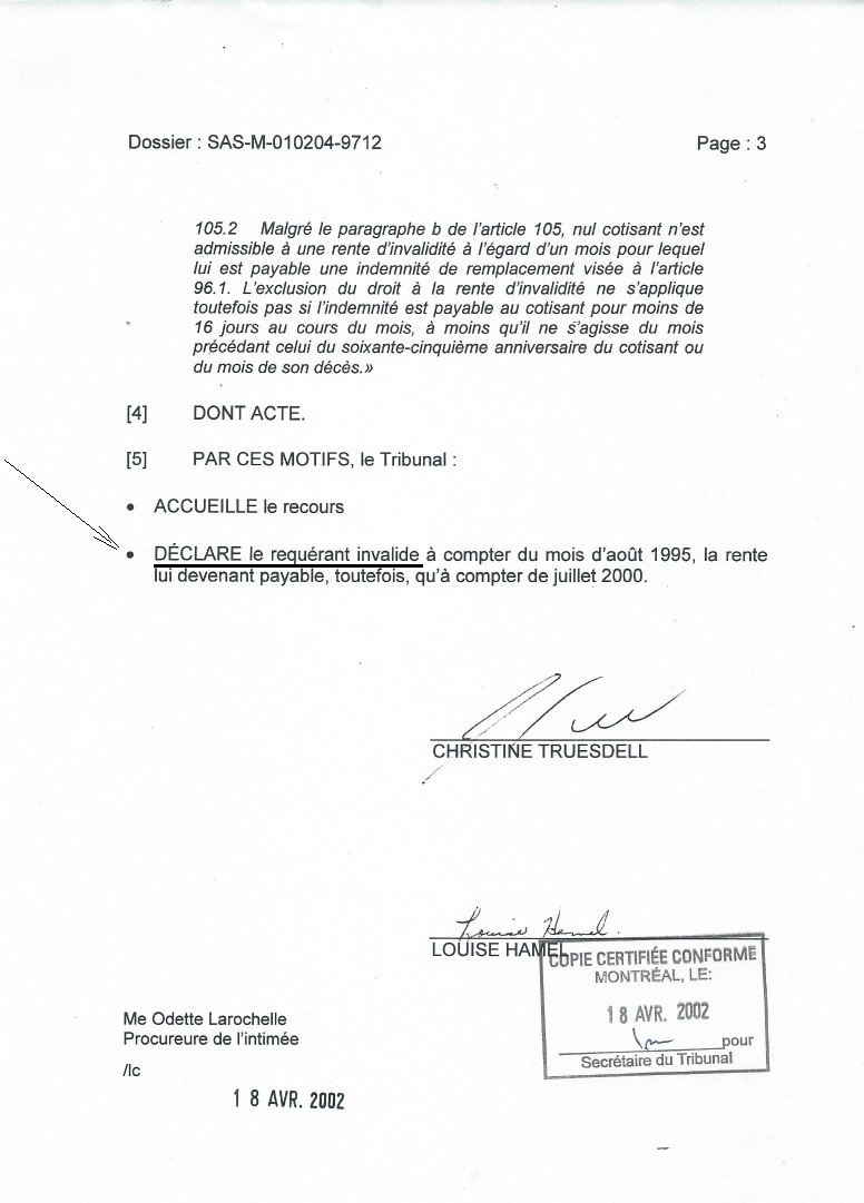 Merci au docteur Louis E. ROY qui m'a rendu invalide à vie par complaisance