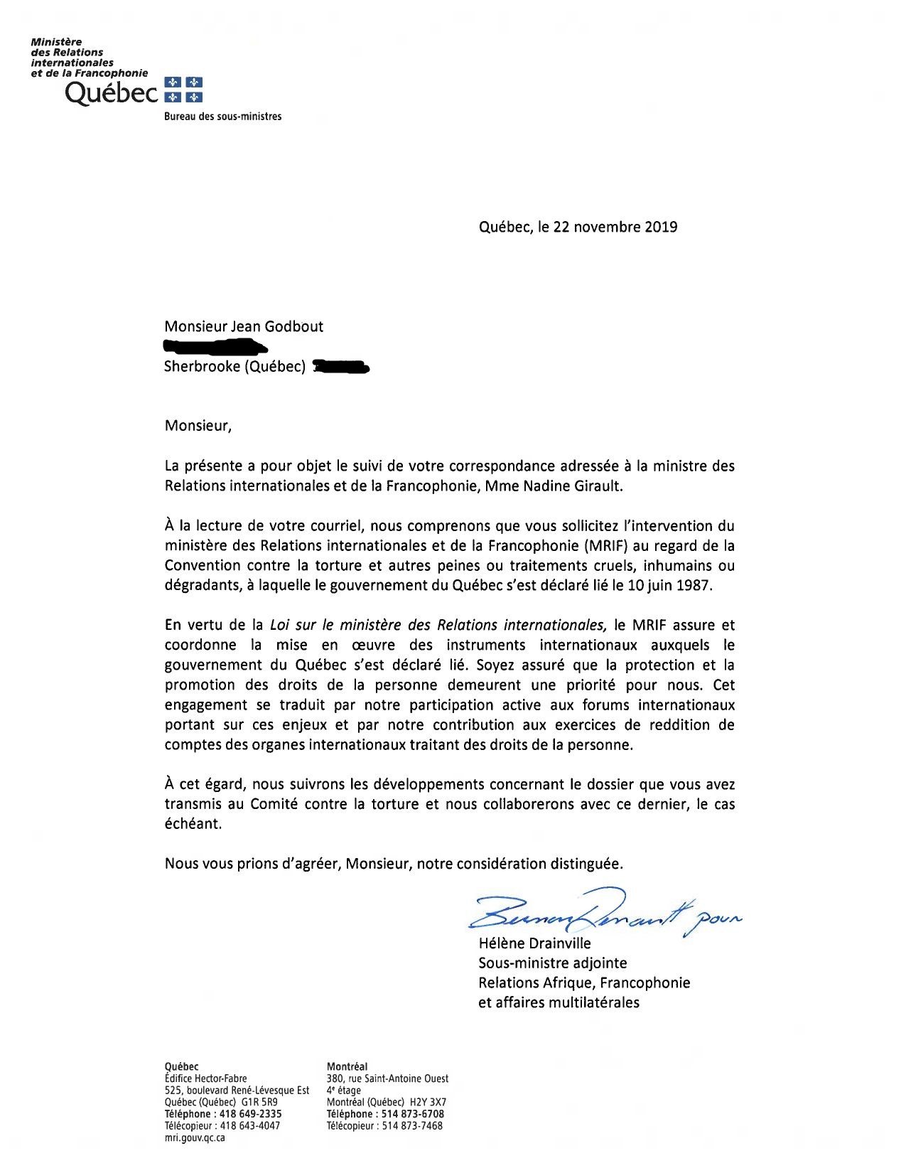 Thank you for writing to François-Philippe